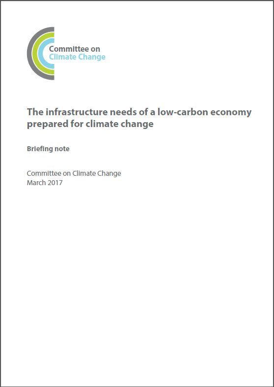 The infrastructure needs of a low-carbon economy prepared for climate change (March 2017), is a briefing note supporting a letter of the same name from Lord Deben (Chair, Committee on Climate Change) and The Baroness Brown of Cambridge (Chair, Adaptation Sub-Committee) to Lord Adonis (Chair, National Infrastructure Commission).