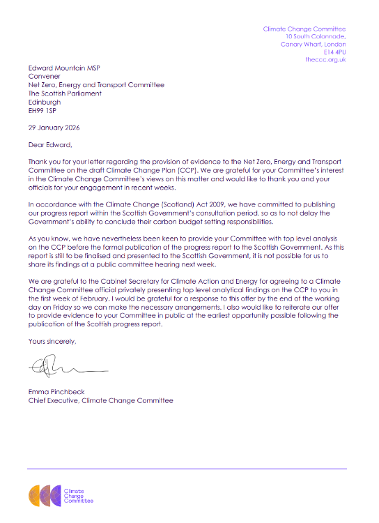 - The CCC is pleased to provide evidence to the Net Zero, Energy and Transport Committee in public at the earliest opportunity possible following the publication of the Scottish progress report.